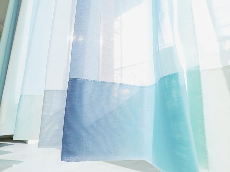 グラデーションブルーのフロントレースでお部屋に彩りを京都・滋賀の高級オーダーカーテン専門店モンルーベ。