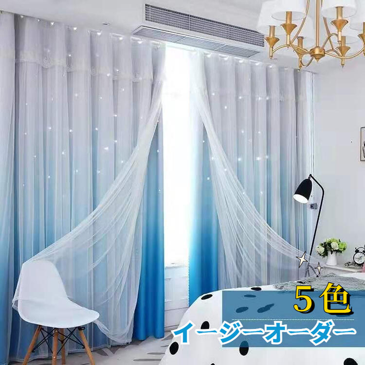 マラソンCP最大2000円OFF×P5 カーテン レースカーテン付き 遮光カーテン グラデーション 星 透かし オーダーカーテン 上飾り おしゃれ星穴 彫り透かし 女の子 男の子 子供部屋 女性 男性 姫系 リビング 寝室 店舗 サロン 一体型カーテン インスタ 洗える。