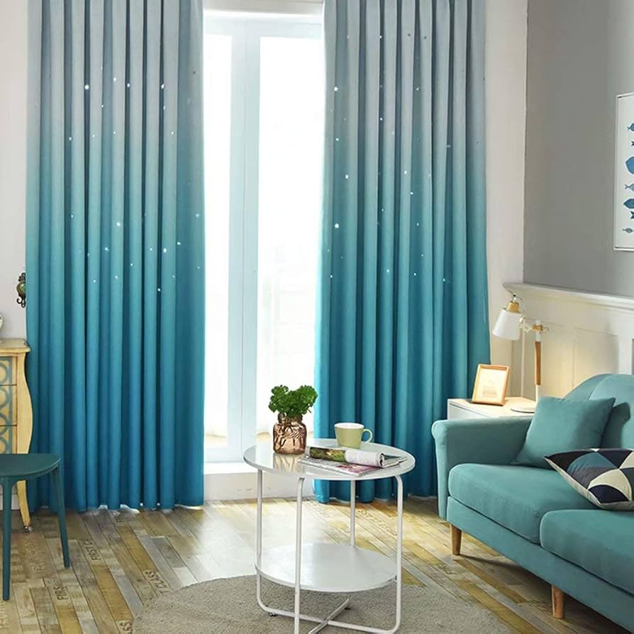 マラソン☆OFF×P5倍 遮光カーテン レースカーテン付き 星 透かし キラキラ グラデーション オーダーカーテン 西海岸 おしゃれ かわいい 一体型星穴 星柄 彫透かし 寝室 リビング ブルー 水色 黄色 グリーン ピンク 男性 女性 子供部屋 新生活。