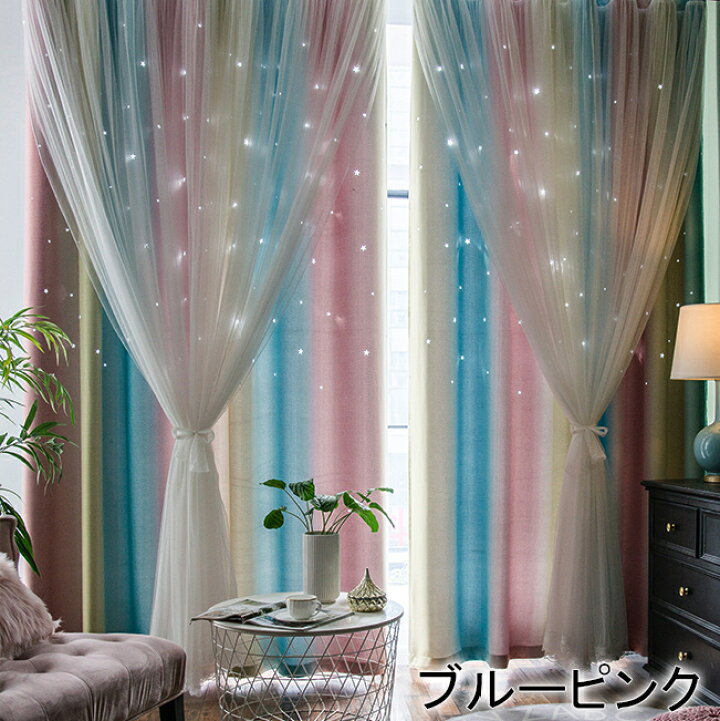 楽天市場2枚20%OFF、4枚30%OFF、8枚50%OFF×P5 カーテン グラデーション 星 透かし オーダーカーテン 2重カーテンレースカーテン付 一体型 星穴 透かし彫り 虹カーテン レースセット 姫系 男性 女性 子供部屋 女の子 男の子 キッズ 寝室 リビング 洗えるかわいい。