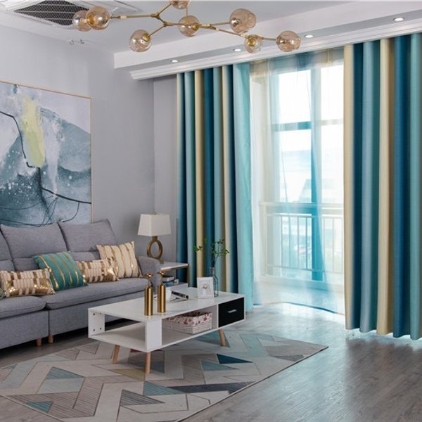 海の中 カーテン ブルー 地中海風 グラデーション オーダーカーテン おしゃれ ストライプ 3-4級遮光 断熱 紫外線カット 省エネ タッセル ブルーグリーン パープル 寝室 リビング 店舗 サロン スタジオ Mediterranean Sea。