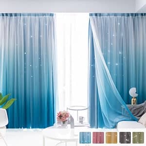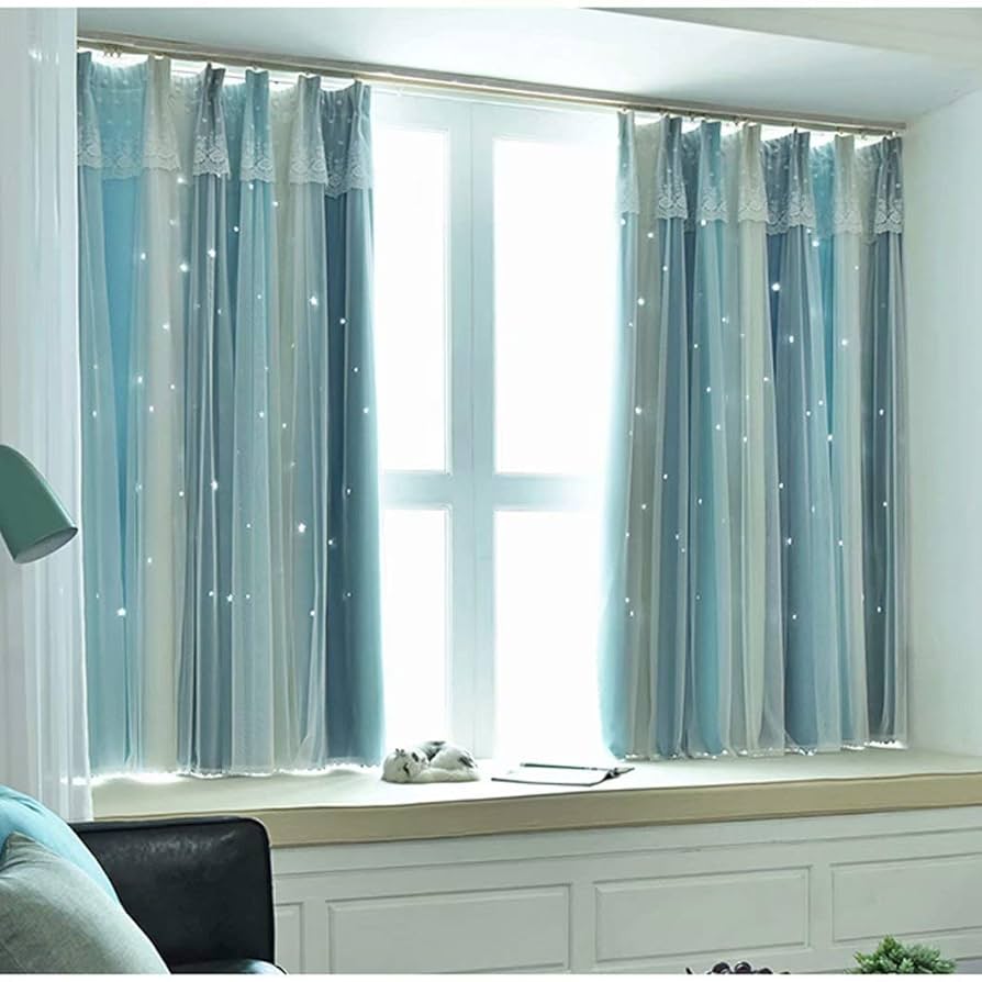遮光カーテン 姫系 遮光率90%以上 二重 レース カーテン 可愛い 星 透かし彫り 遮像 目隠し ブルー&ベージュ グラデーション おしゃれ2倍ヒダ 子供 女子 部屋 寝室 居室 リビング マンション 窓 出窓 小窓 インテリア 引越し祝い 新築祝い 装飾レール・機能レール適用サイズ選択可能。