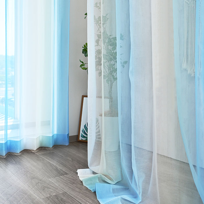 裾に向かって色づくグラデーションの遮像レースカーテン「ソフィア」ブルーレースカーテンオーダーカーテン通販のaiika アイカ。