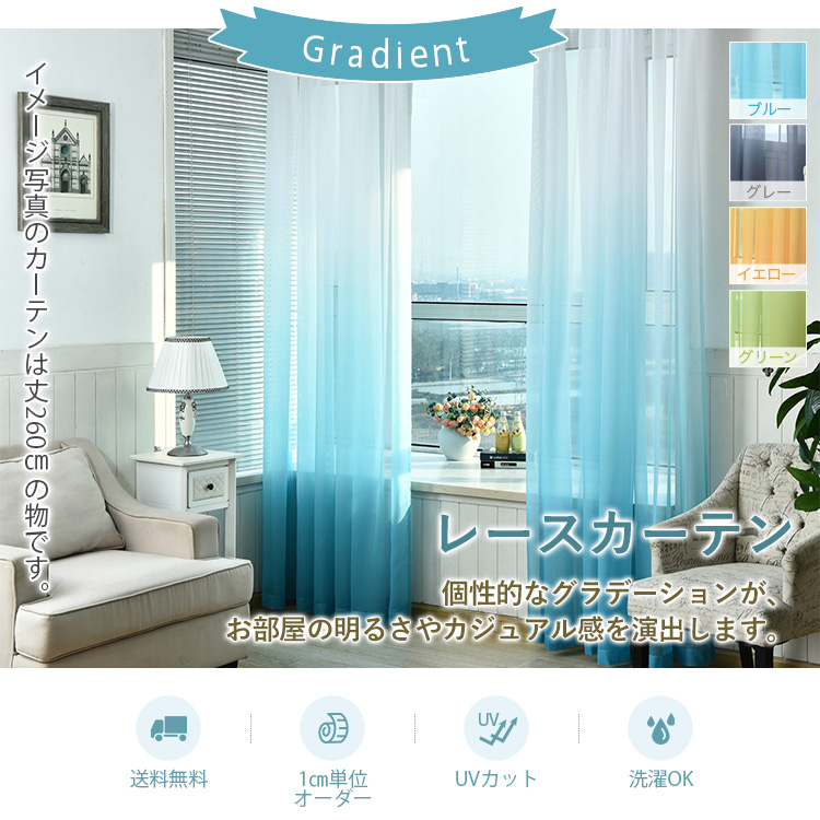楽天市場最短・翌日出荷レースカーテン おしゃれ グラデーション カラーレース 洗える 防炎 無地 オーダーカーテン 2枚セット 1枚 国産裾巻きロック ウェイトロック : パーフェクトスペース カーテン館。