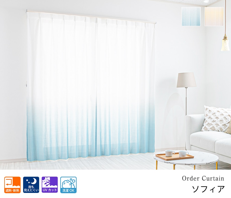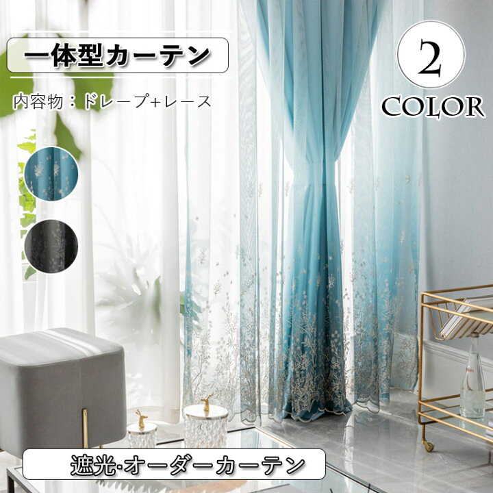 カーテン レース ドレープ 二重カーテン 一体型 遮光 オーダー グラデーション 北欧 UVカット 遮像 おしゃれ かわいい エレガント シンプルブルー パープル ピンク グリーン イエロー オレンジ 出窓 お姫様 姫係 ベッドルーム リビングLIFEvLIFE楽天市場店。