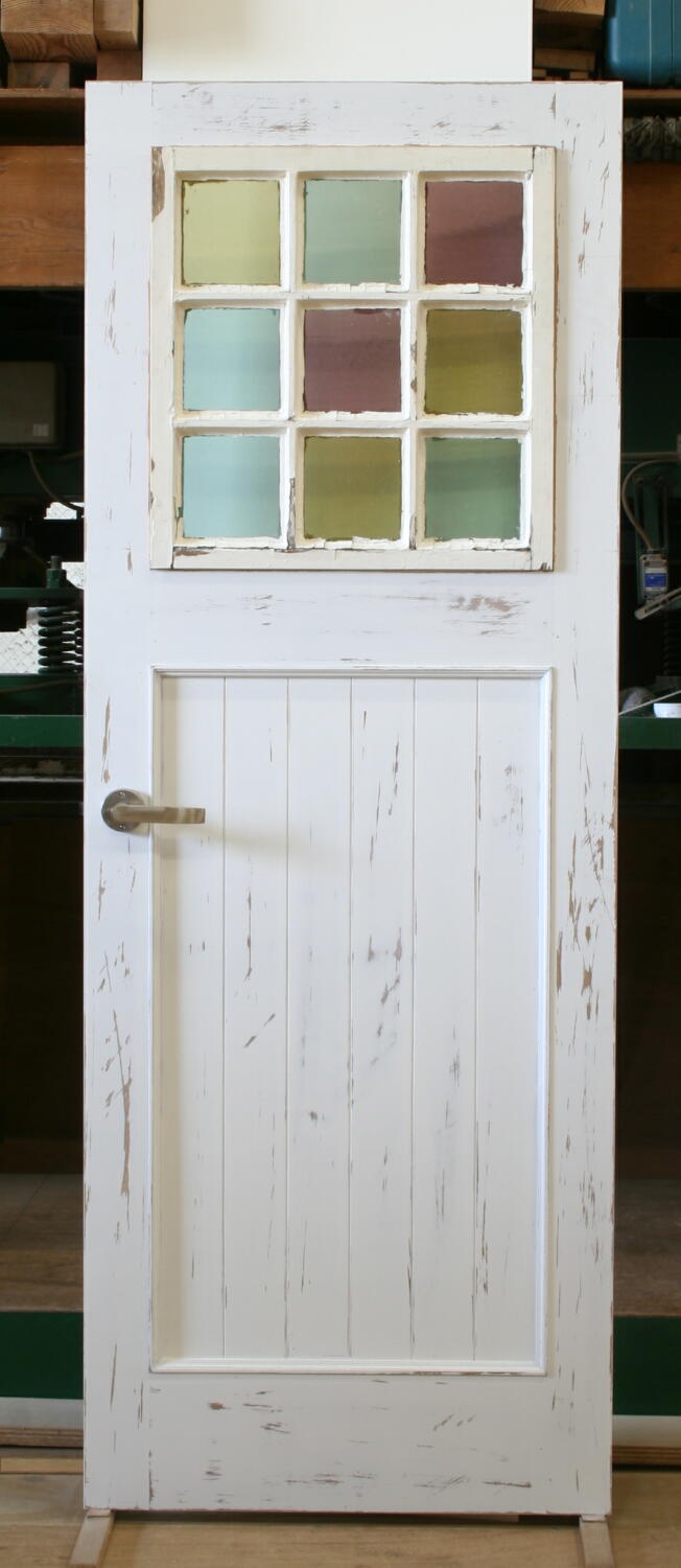 アンティーク木製格子窓をはめ込んだホワイト剥がし塗装のアンティークドア-室内ドア製作事例012室内ドア工房 okamoku。