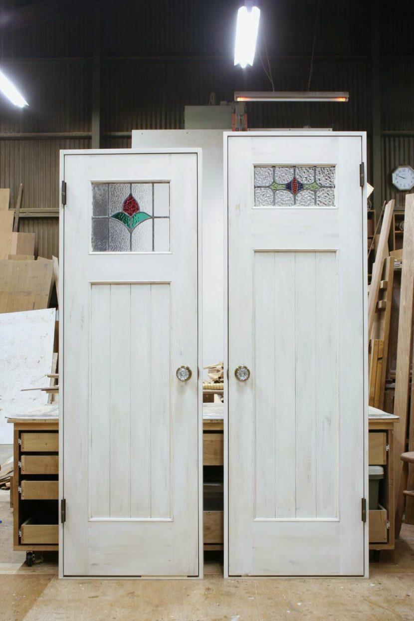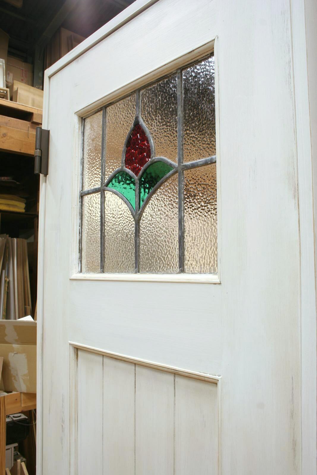 ホワイト剥し塗装のアンティークステンドグラスドア – 室内ドア製作事例003室内ドア工房 okamoku。