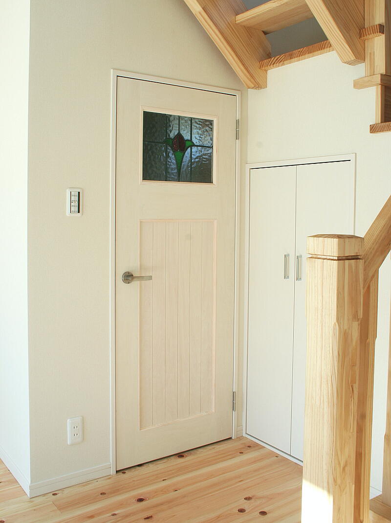 ホワイト木目仕上げのアンティークステンドグラスドア-室内ドア製作事例014室内ドア工房 okamoku。