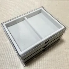 🩵無印良品のアクセサリートレイが入る ジュエリーボックス トレイは3つ設置しています。 とにかく面倒くさがりの私は、いくつも取り出す手間が 煩わしく感じることが笑 そこで、リングケースの高さと 段差を設けることで、 下の段のケースを。