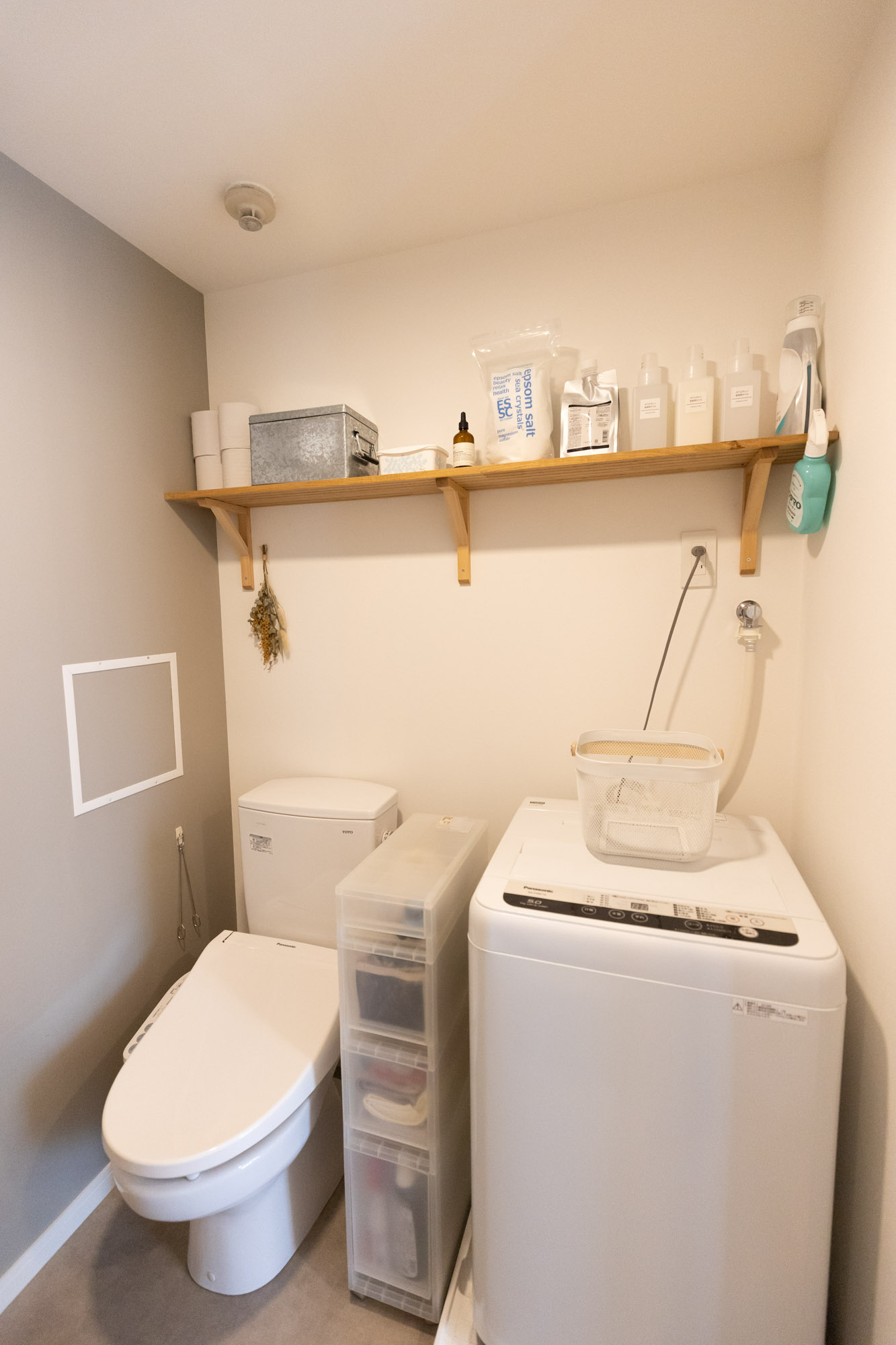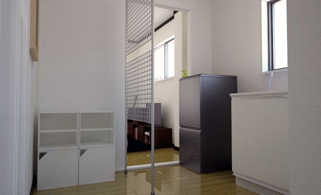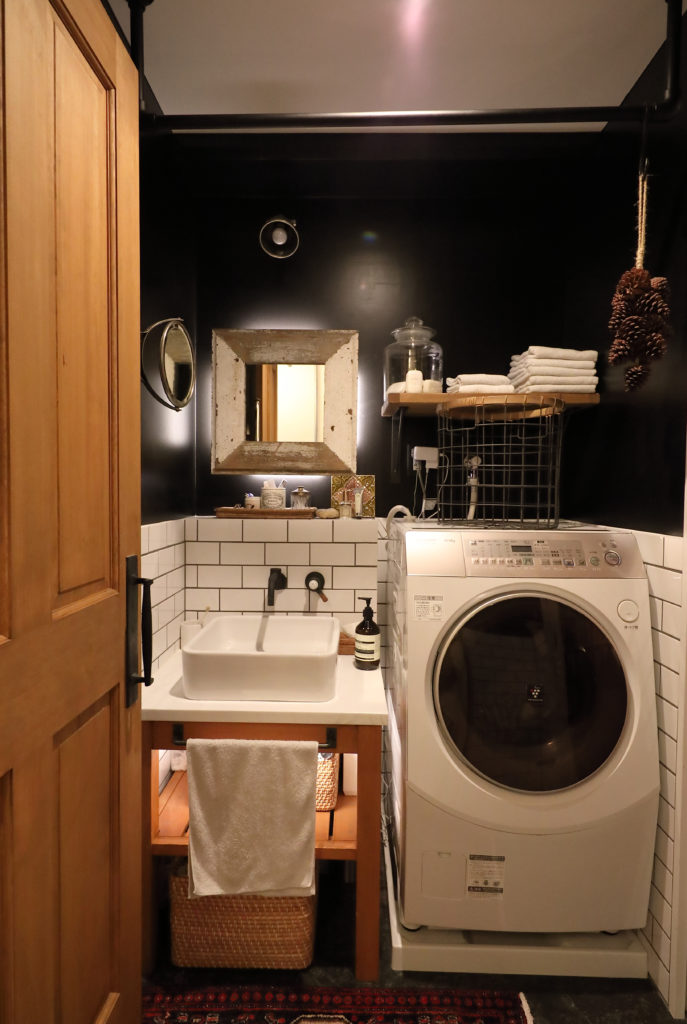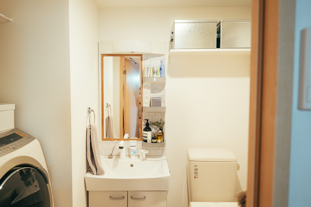 玄関から丸見え! 脱衣所がないお部屋で 生活感の隠し方。