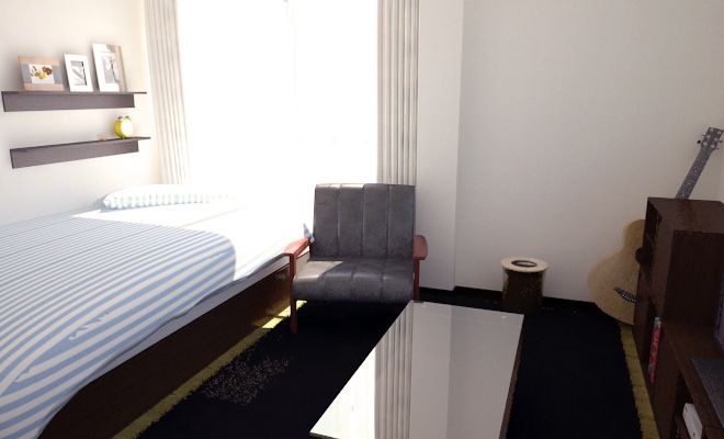 パーティションで脱衣所確保!ちょっと狭い6畳1Kのレイアウト例 - 一人暮らしのワンルームインテリア。