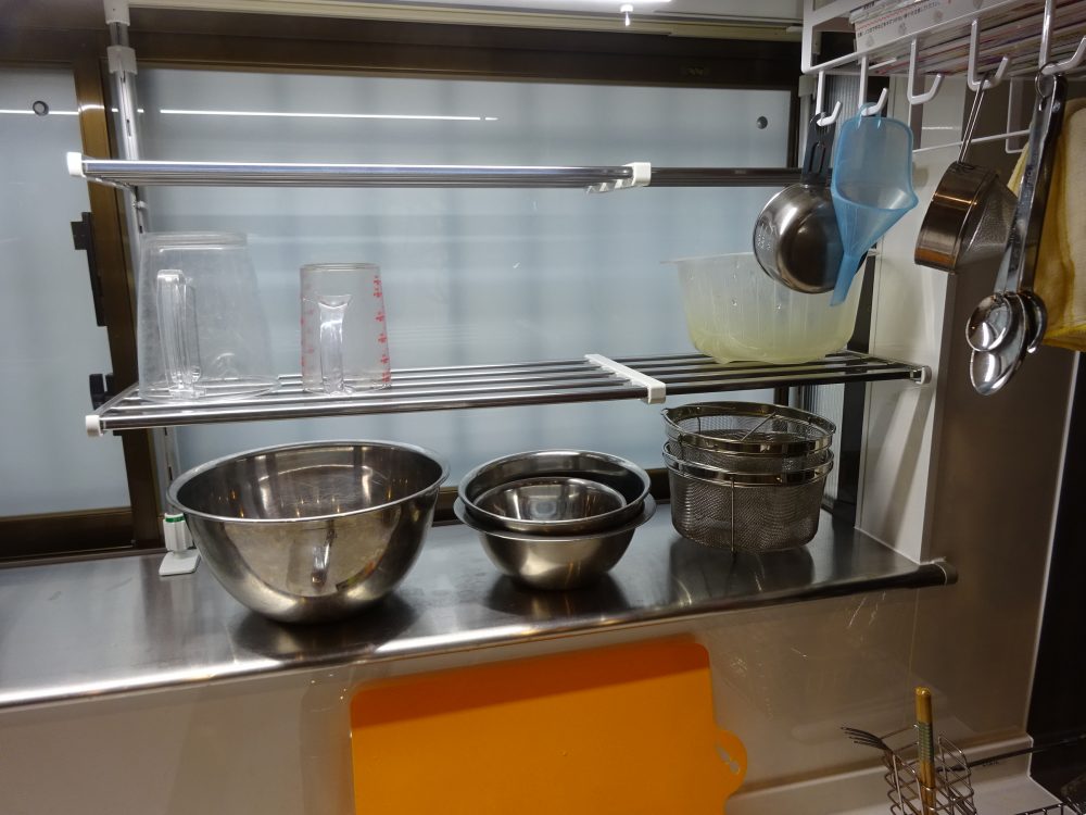 キッチン前、出窓の棚には頻繁に使う調理器具を置くことにしましたホットクックで実現する調理の自動化。