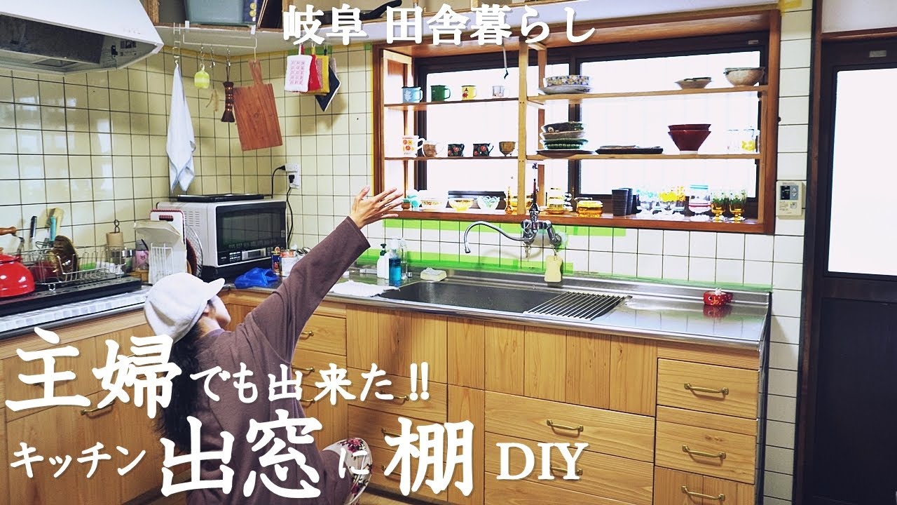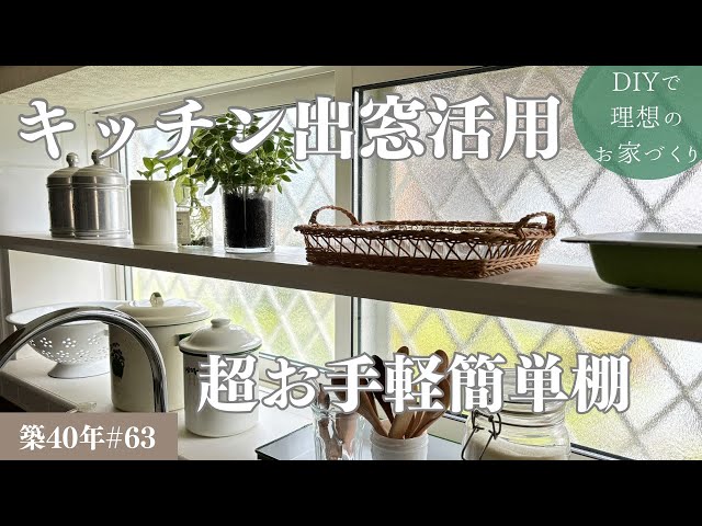 築40年DIY63 キッチン出窓活用超簡単棚スペース2倍で明るさも確保 - YouTube。