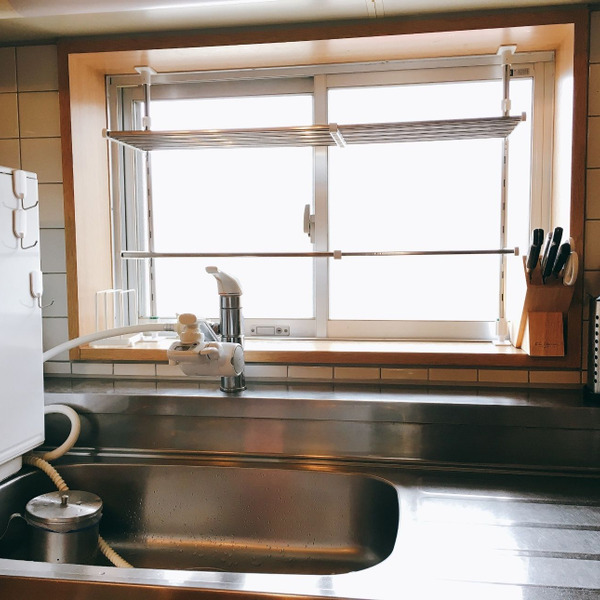 キッチン出窓‥丸ごと水切りカゴ兼棚にしてしまおう☆収納術や整理整頓のアイデア暮らしニスタ。