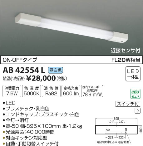 コイズミ照明 キッチンライト 流し元灯 キッチン照明 手元灯 LED交換不可 非調光 近接センサー付 電球色 2700K : Smart Light- 通販 - Yahoo!ショッピング。