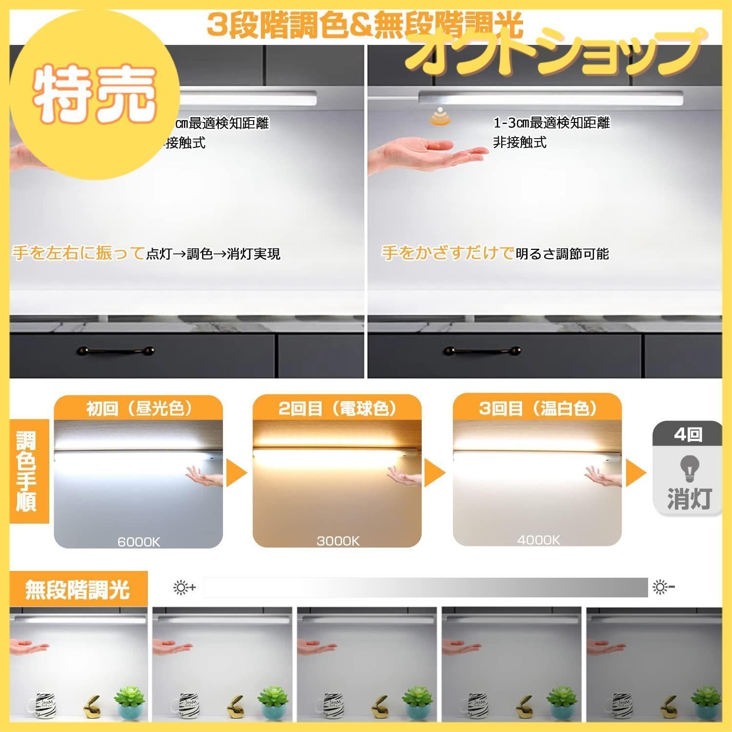 楽天市場非接触式調色・調光可能 SOAIY キッチン用ライト LED センサーライト キッチンライト 充電式 手元灯 バーライト キッチンタッチレススイッチ USBライト LEDライト スリムライト 枕元 棚下 壁面 キッチン 台所 多目的灯 30CM 薄型 送料無料 : IPOW 楽天。