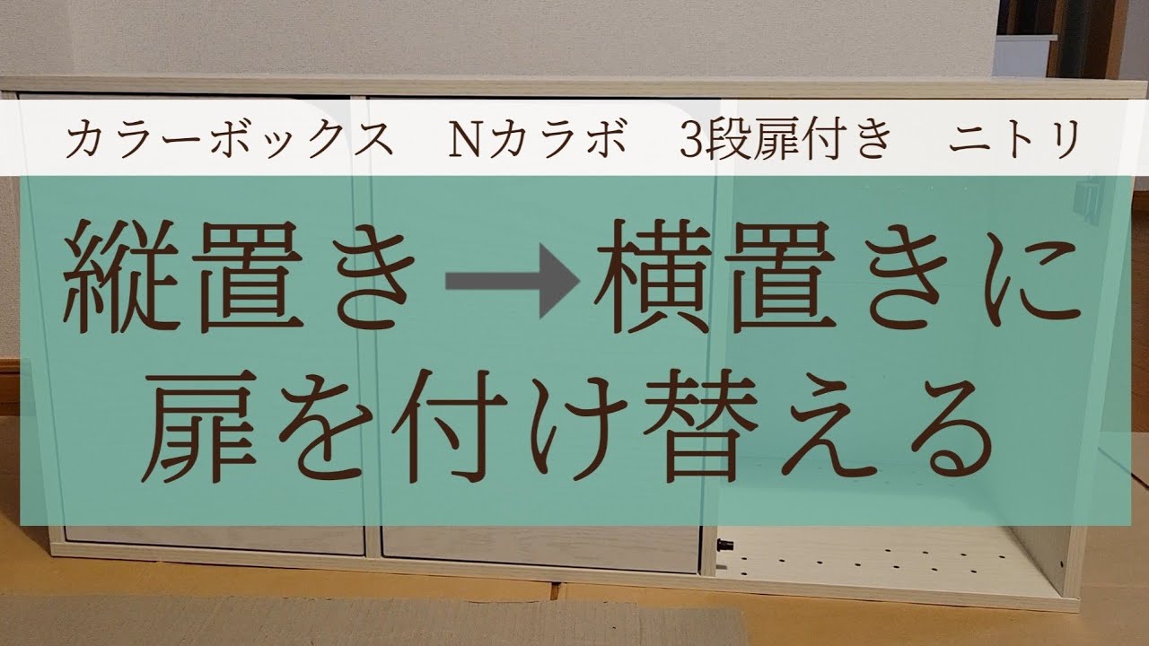 ニトリ カラーボックス Nカラボ 3段扉付き 縦置きから横置きに組み替える。