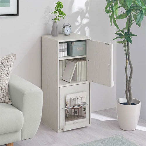 連結できるカラーボックス Nカラボ 扉付き 3段 ホワイトウォッシュラック 棚 シェルフ ニトリ。