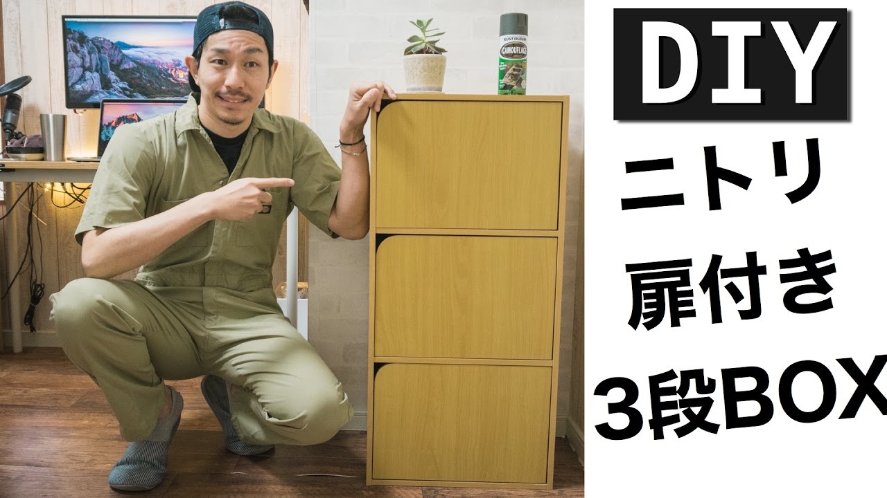 ニトリカラボ3段扉付 リメイク2 ニトリの扉付き3段カラーボックス作り。