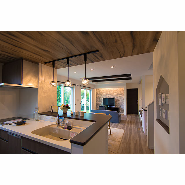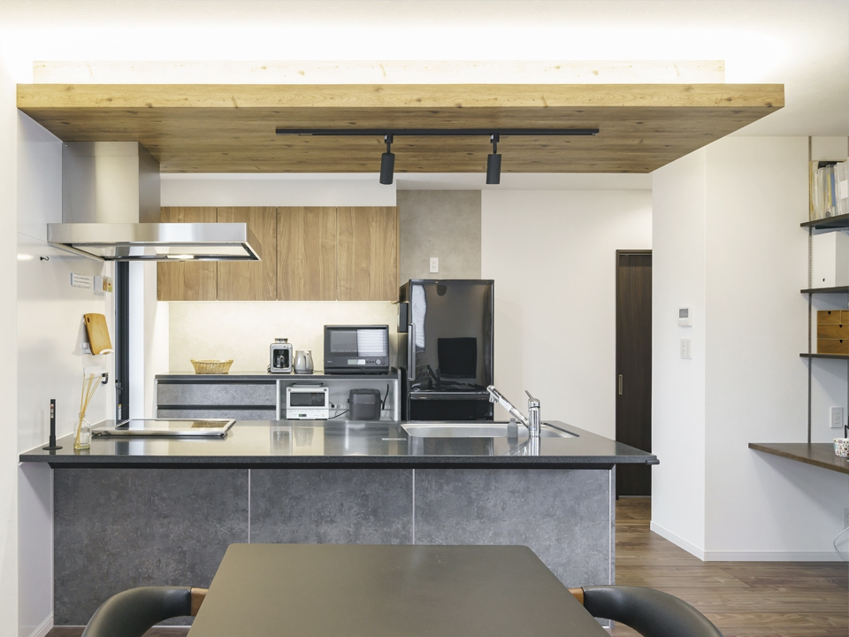 キッチンのアクセントを天井にも。注文住宅・建て替え・新築のLOHASTA home ロハスタホーム夏涼しく冬暖かい高断熱・高気密住宅。