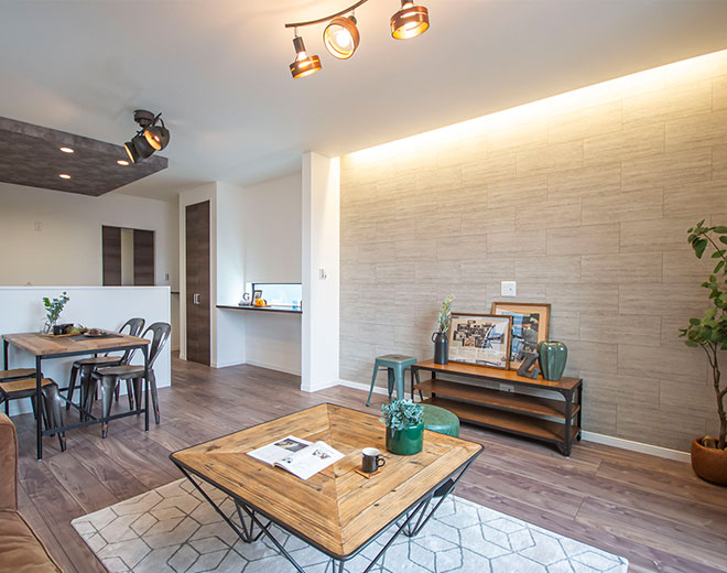 やすらぎのグレイッシュトーン、リビングに家族が集まる家コンセプトハウス大阪エリアの一戸建てなら和光ホームズ分譲住宅サイト。