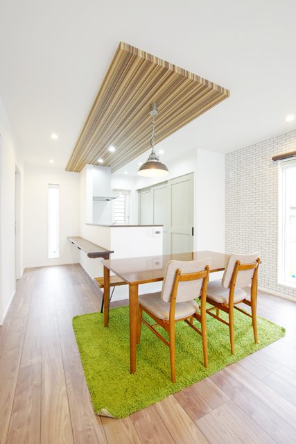折り上げ天井と木目のアクセントがおしゃれなコンパクトな家 富谷市宮城県仙台市新築・注文住宅・住宅公園あいホーム。