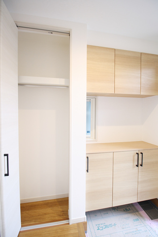 シューズインクローゼットをそなえた玄関スペース。コート類をかけられる便利な大容量収納も くふうイエタテ。
