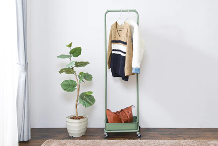 狭い玄関にコート掛けを置きたい!そんな時にはオーダーメイドサイズがおすすめですオーダーメイド収納棚・ラックならミスターアルマン。