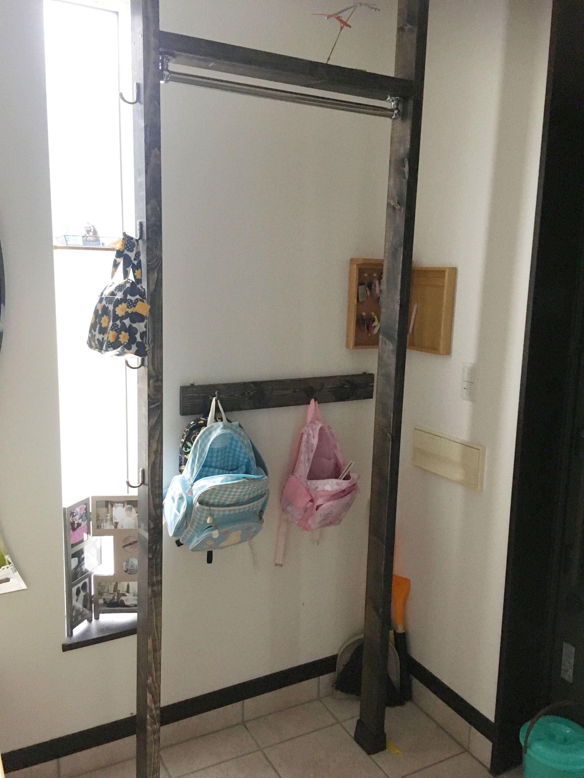 玄関用子どものコート掛けをDIY!省スペースで好きな場所に設置できる巣作りプラス。
