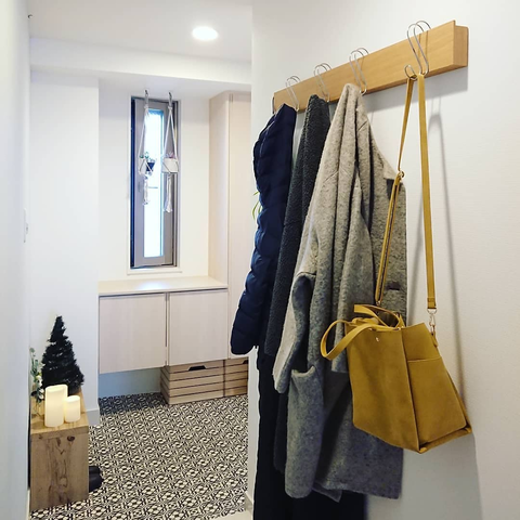 収納上手さんが実践!狭い玄関で壁を使ったコート掛けアイデア集。