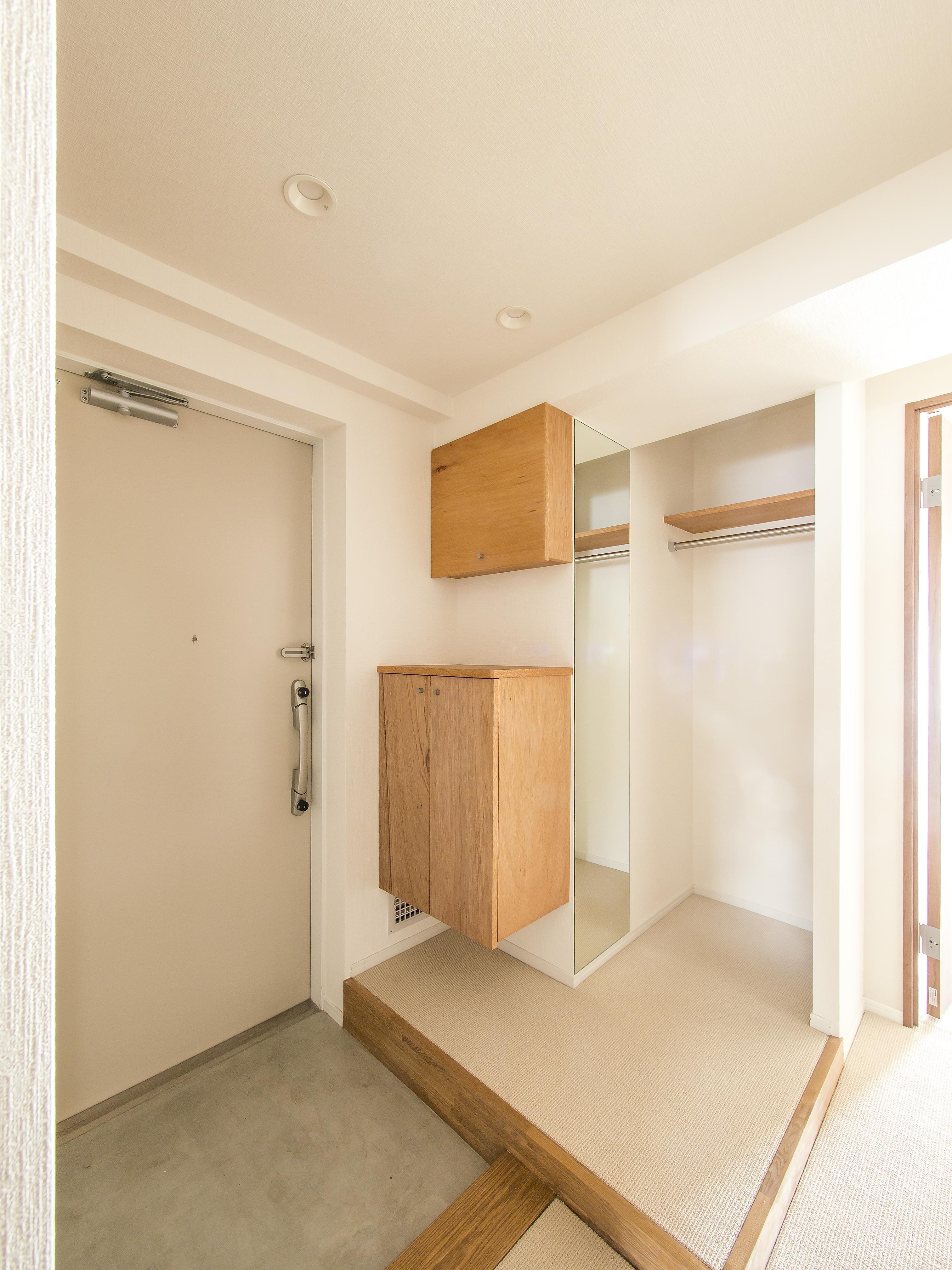 コートクロークは玄関と一体的に 子どもの小上がりのある家 すくすくリノベーションvol.9- 玄関事例SUVACO スバコ。