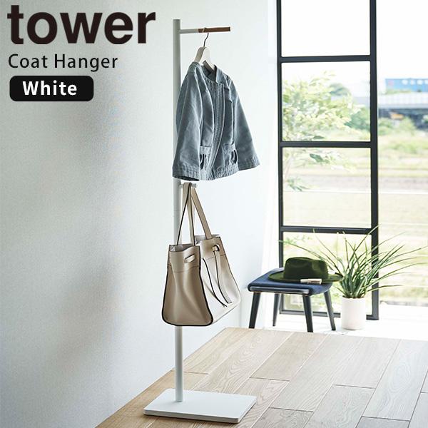 帽子収納フック付き コートハンガー タワー山崎実業 tower ハンガーラック 2段 コートハンガー コート掛け 帽子掛け コートラック 上着 収納帽子 玄関収納 リビング 北欧 おしゃれ シンプル yamazaki ブラック ホワイト 6129 6130 送料無料57-61シリーズ別。