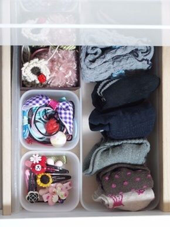 ヘアゴムの収納アイデア集!引き出し収納に見せる収納、100均や無印を使った方法も2ページ。