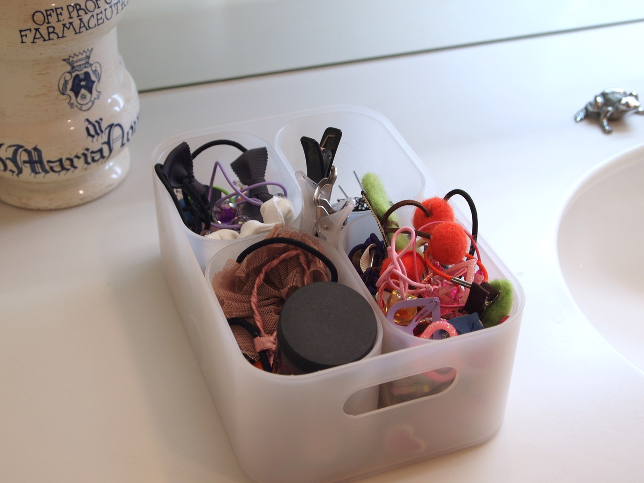 子供と暮らす 無印良品を使って・ポイっと入れる子供のヘアゴム収納『つづく、暮らし』 子供と一緒に、無理なく すっきり 続けられるお片付け。