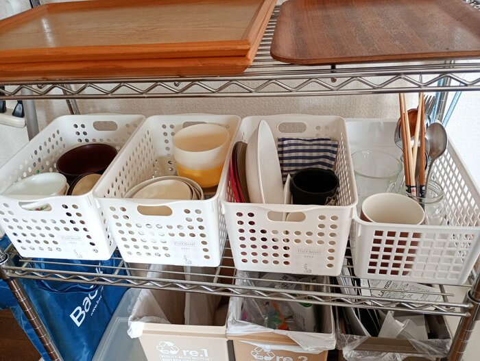 我が家の食器収納事情!シンプル*メタルラックにオープン収納!収納術や整理整頓のアイデア暮らしニスタ。