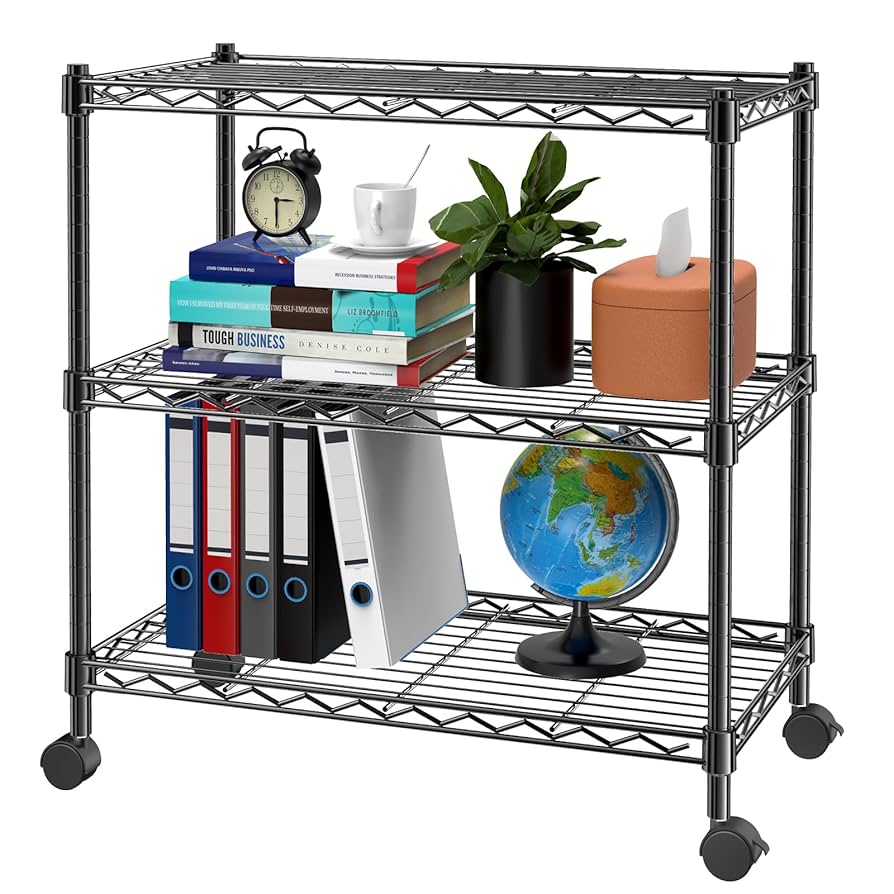 メタルラック スチールラック本体 キッチン収納ラック キャスター付きラック キッチン棚 - ラック 3段 幅45x奥行31x高さ74cmポール径12mm 防サビ加工 食器棚 家・職場・キッチン・倉庫などに大活躍 サビに強い メタルシェルフ AmazonAEEZO 3段 スチールラックメタル。