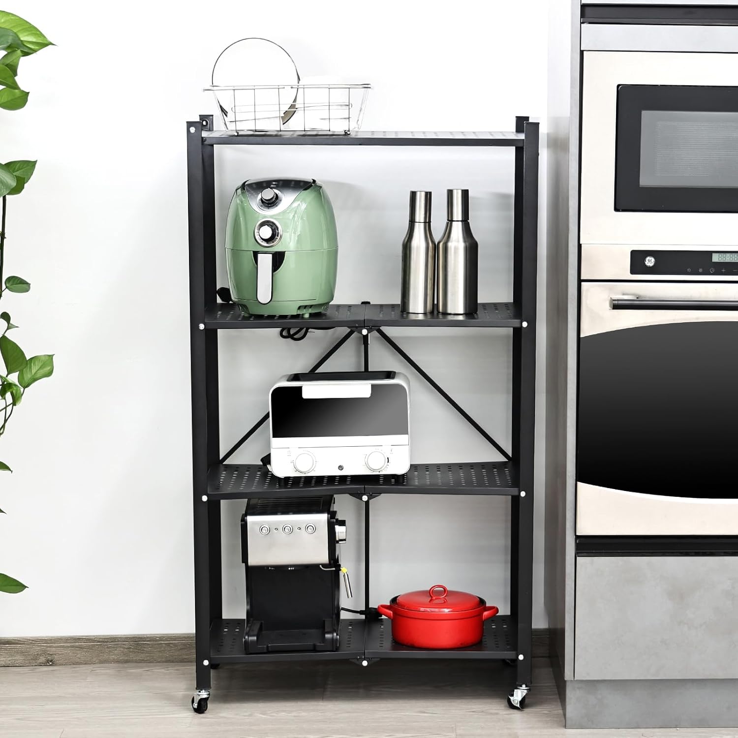 折り畳みラック 折りたたみ収納ラック スチールラック キャスター付き移動式棚 メタルラック 食器収納棚 キッチンラック シェルフラック 頑 スチール ラック シェルフ メタルラック 折りたたみ 3段 4段 5段 キャスター付き 耐荷重30kg 防サビ 食器棚 オープンラック 移動。