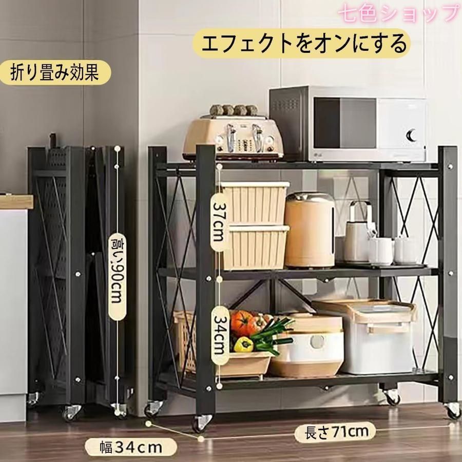 大好評 折りたたみラック 収納ラック メタルラック シェルフ キャスター付き 移動便利 食器棚 防。