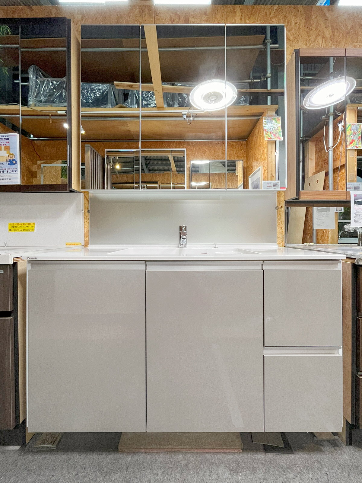 P1900 モデルルーム展示未使用品 Panasonic パナソニック 高級洗面化粧台 シングルレバー水栓 三面鏡 リフォーム W900mm。