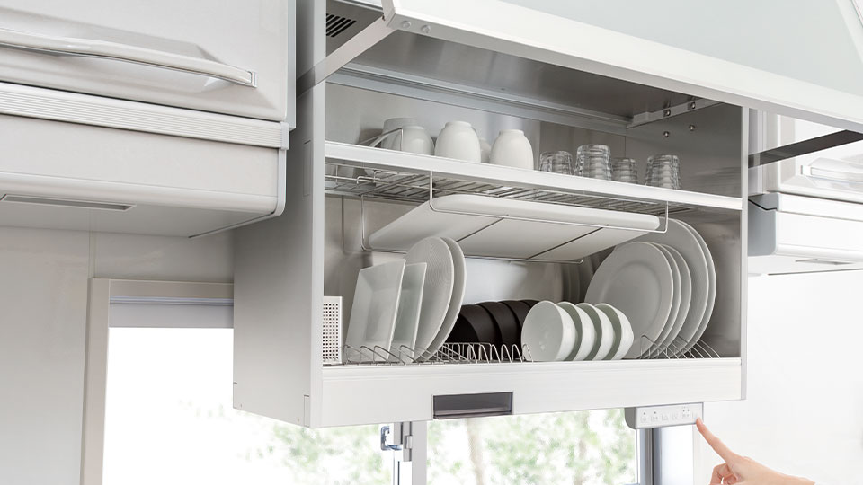 キッチン吊戸棚の悩み解決!昇降式&便利機能で快適にリフォームしようエディオンリフォームサイト。