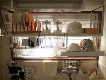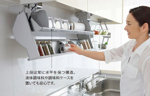 取り出しやすい伸縮吊り戸棚下キッチンラック。