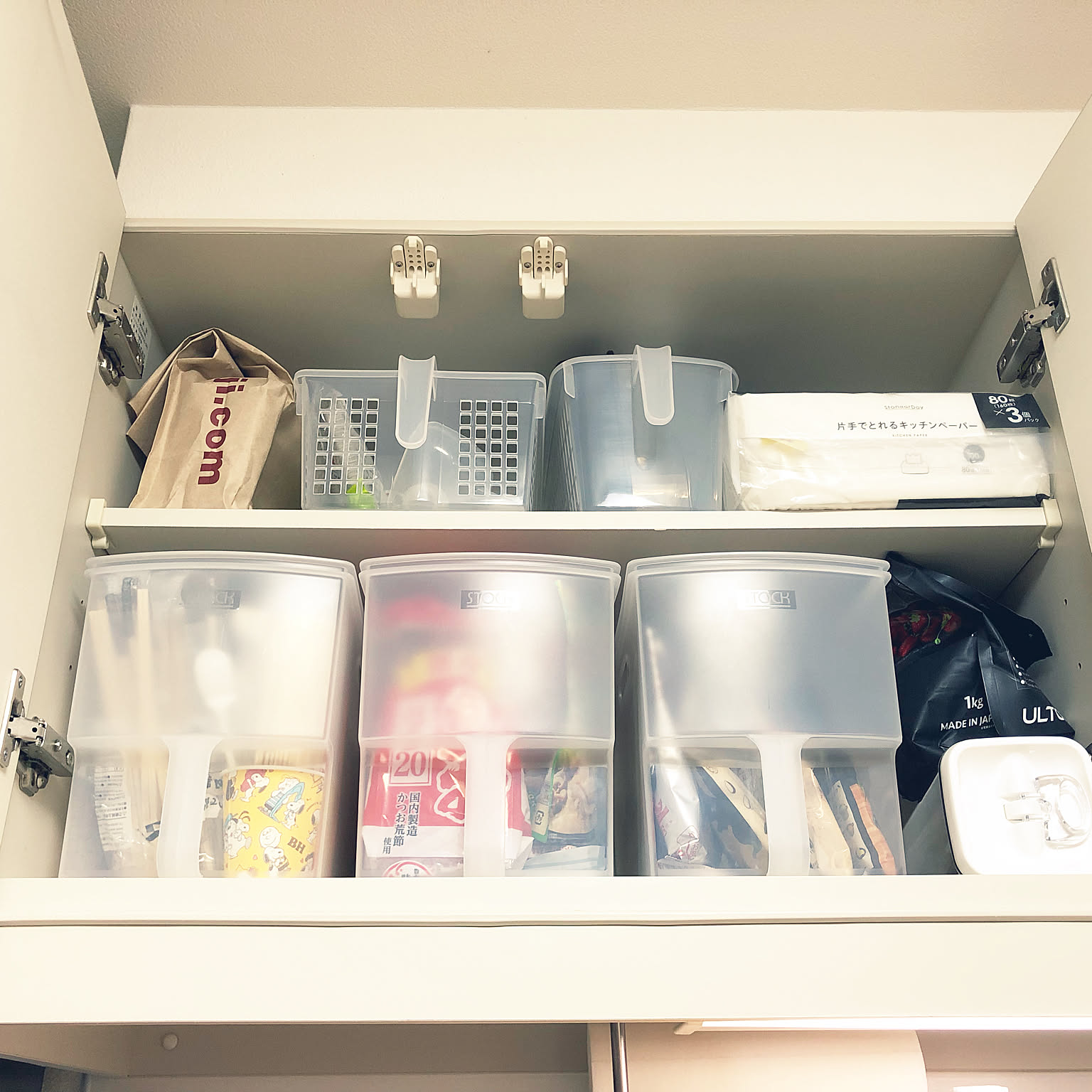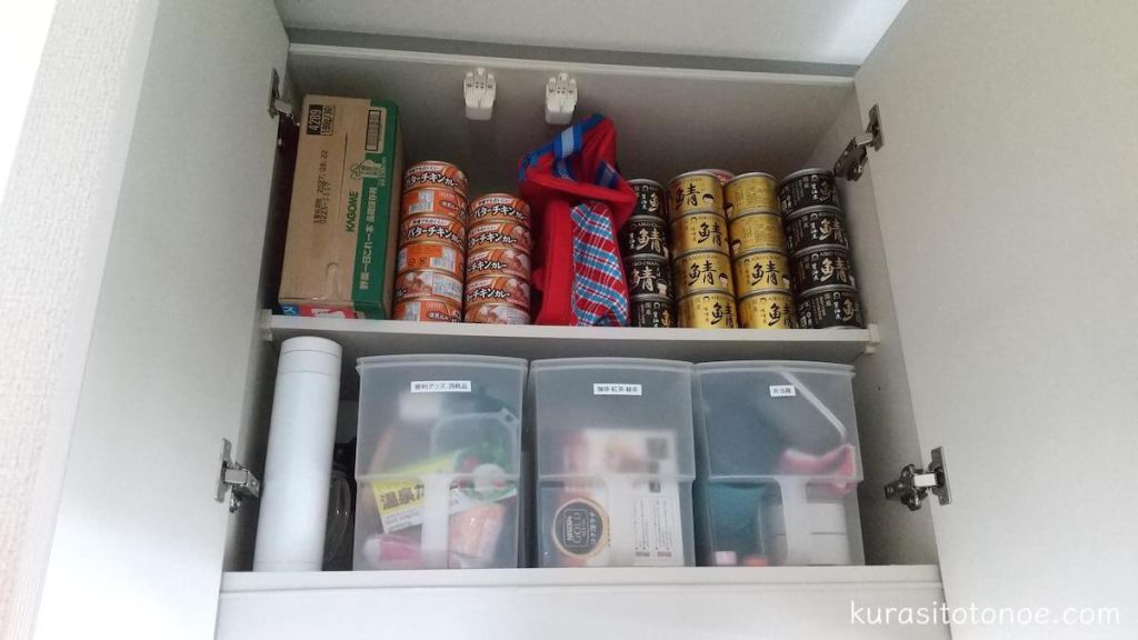 我が家の賃貸キッチン吊り戸棚収納を大公開!収納のコツまとめちいかじ。