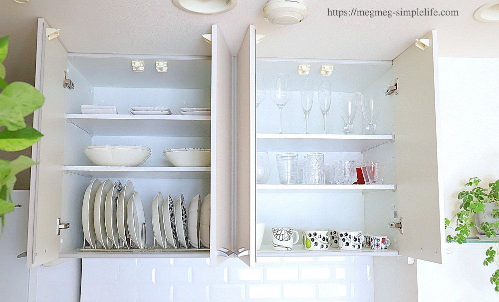 食器棚の収納方法 吊り戸棚と引き出しの中身 - megmeg simple life - 収納インテリア。