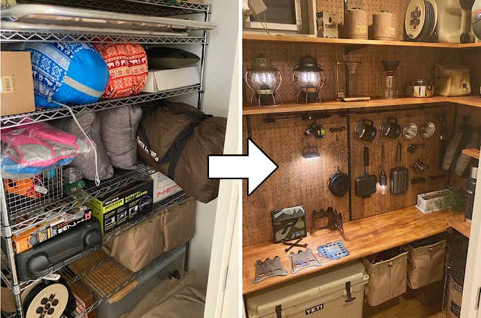 キャンプ用品収納アイデア集!マンションでできる棚DIY活用法Outdoor Life Log。