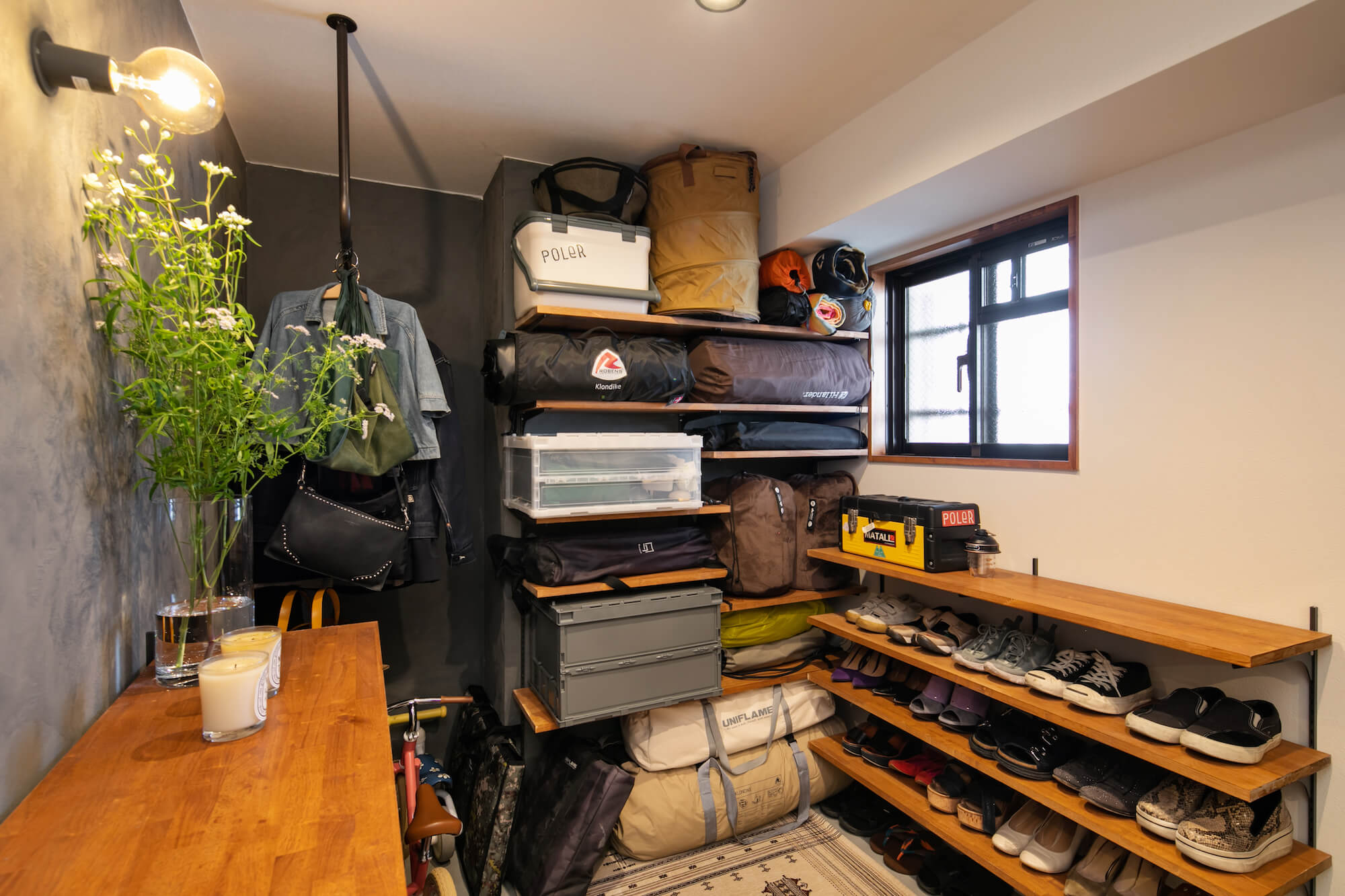 愛用のギアでキャンプへGO!アウトドアの収納は、土間におまかせリノベーション・リフォーム・新築ならスタイル工房。