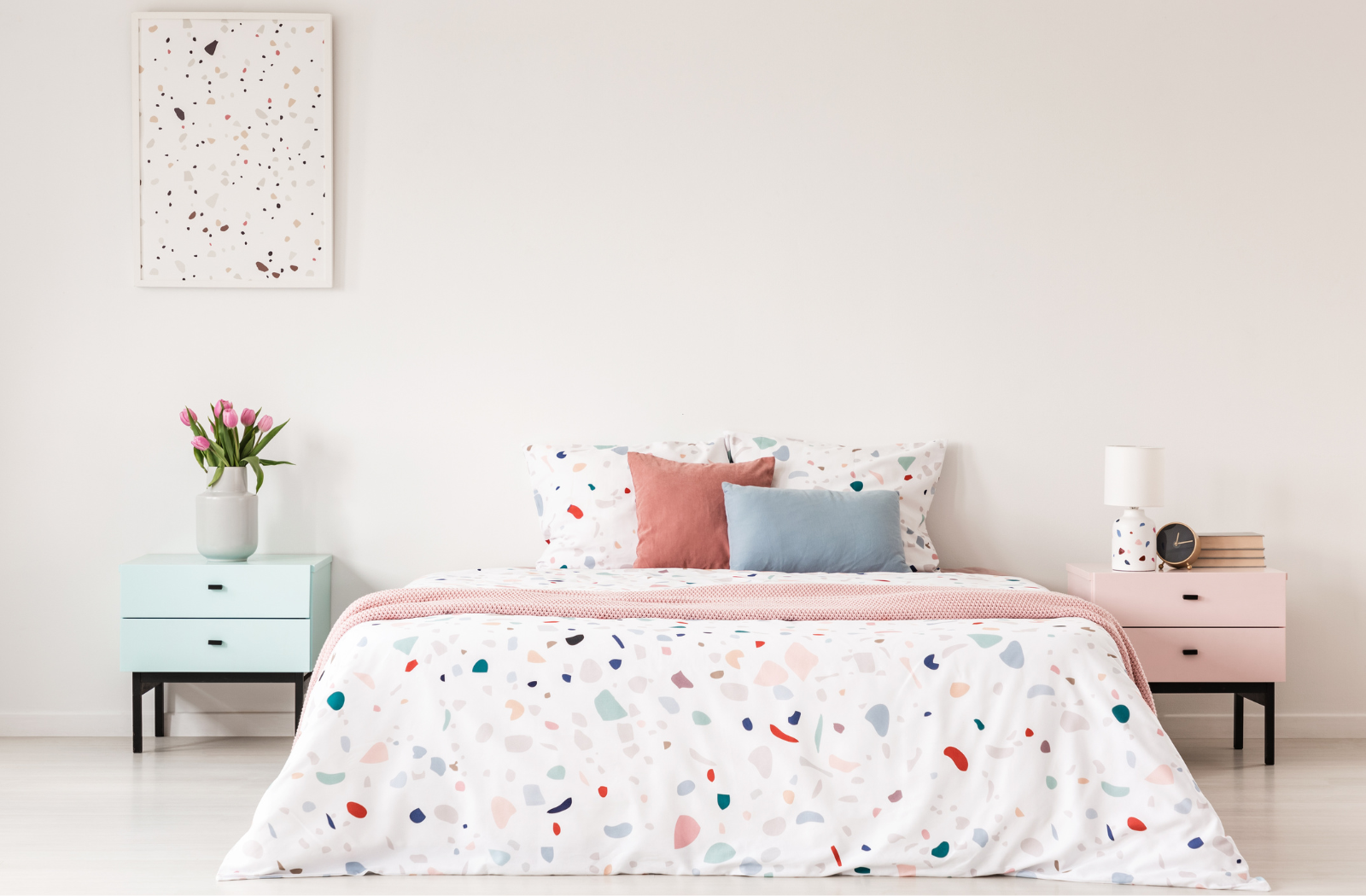 2023年の流行りはピンク×グレー!お洒落なベッドルーム実例。