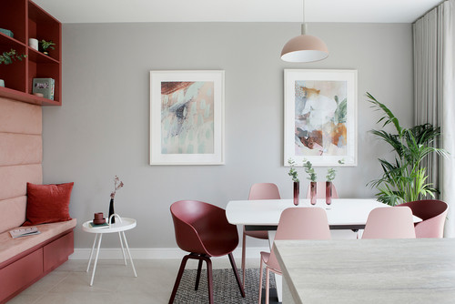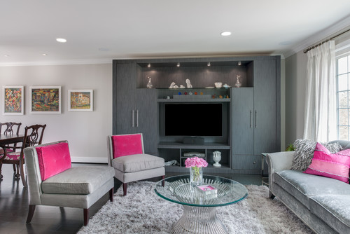 おしゃれなリビンググレーの床、ピンクの壁のインテリア画像 75選 - 2025 年 10月Houzzハウズ。