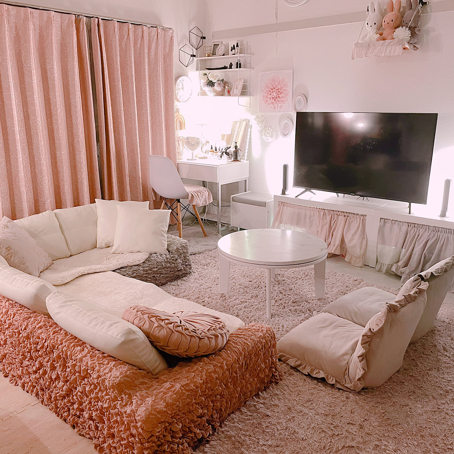 さりげないピンクがポイント♡かわいい一人暮らしのリビングコーデカヴァースインテリア。