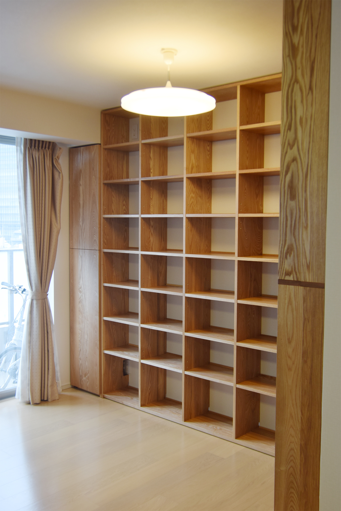 TANA 壁面収納家具 タモ材の本棚│オーダー家具と無垢天板 東京 WOODWORK。