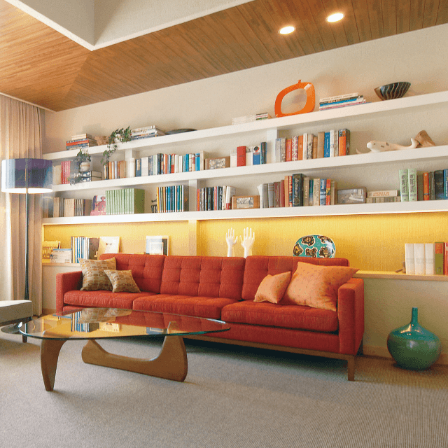 テーマは50'sレトロ&ポップ壁一面の棚に好きなものを並べて 見せながら収納する家ToKoSie ー トコシエ。